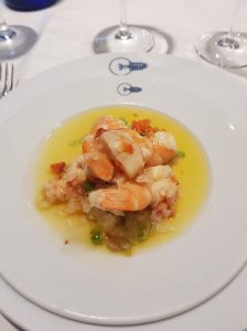 Ossian 2015 100% Verdejo Fermentado en Barrica con Salpicón de Bogavante y langostinos.